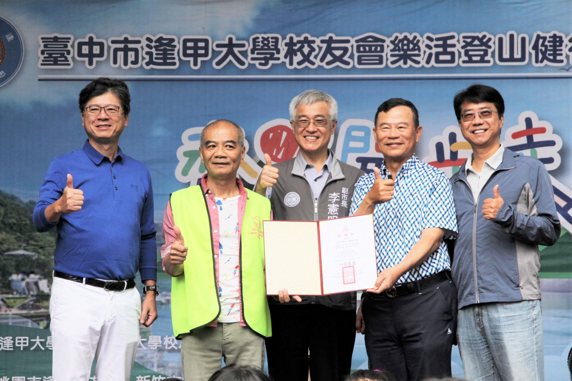 主辦單位台中市校友會王銘鴻理事長,首先致詞感謝桃園市政府、逢甲大學、校友總會及各地校友會的支持,及校友企業包括: 允將建設、森田藥妝的捐贈,再次感受到逢甲人的善心滿人間,讓「逢甲大學校友會」在「社會責任(CSR)」上又增添一樁。接著桃園市政府李憲明副市長(逢甲建築系畢業優秀校友)也上台代表桃園市長致詞,歡迎逢甲校友們到石門水庫舉辦活動,並代表市府致贈一千份紀念品給所有參加的校友。