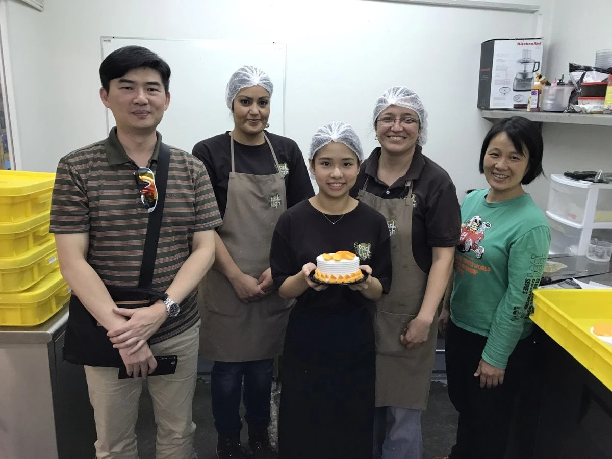 海外實習情形,吳廣文主任(左1)與實習同學合影。