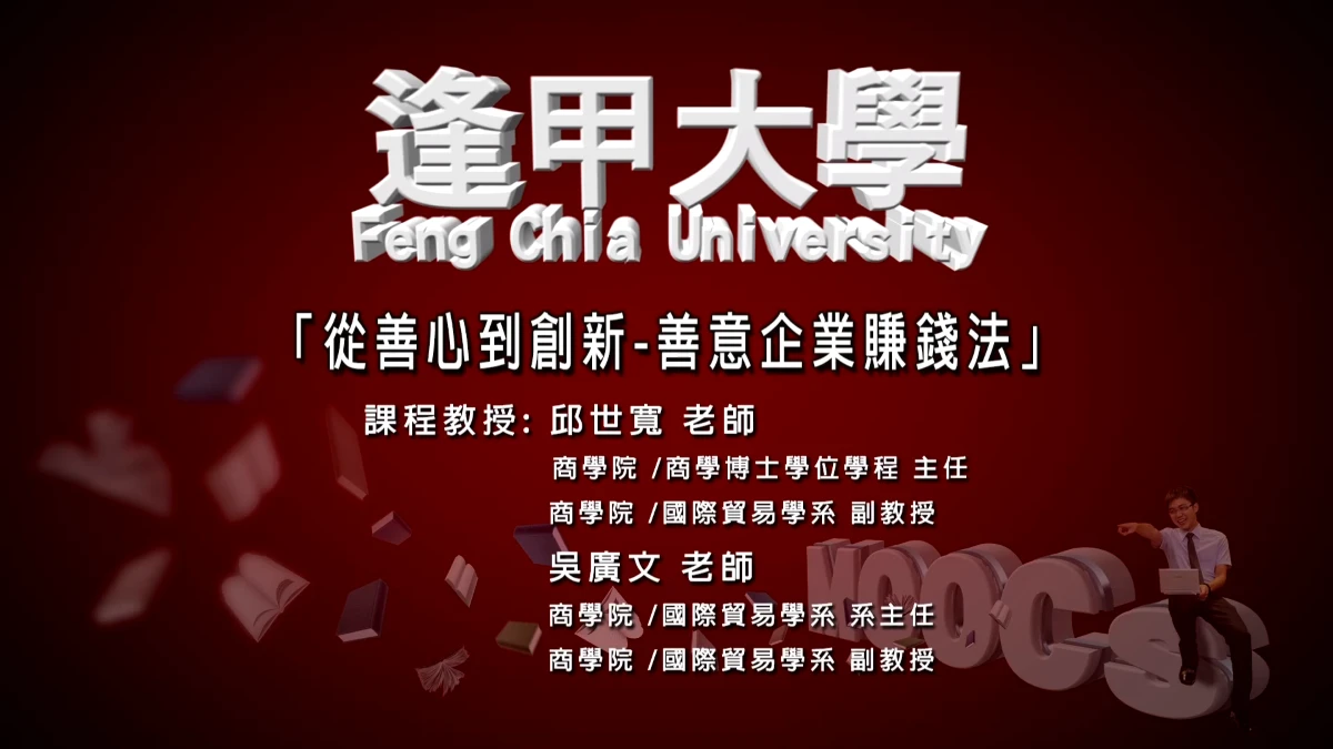 「從善心到創新─善意企業賺錢法」磨課師課程是由母校國際經營與貿易學系邱世寬教授、吳廣文教授合作開設,課程定位為進入商管專業領域—創業與企業成長學習的啟發性課程,以企業個案為主,邀請里仁公司、信義房屋、歐都納、太平洋自行車、歐萊德國際、薰衣草森林等6家知名企業現身說法,引導學習者在思維旅程中逐步建構屬於自我的企業領悟,找到屬於善意企業的新未來。評審以「內容具實務性,作業設計多元,課程影片以中文說明與英文字幕顯示,具推廣效果」給予高度肯定。