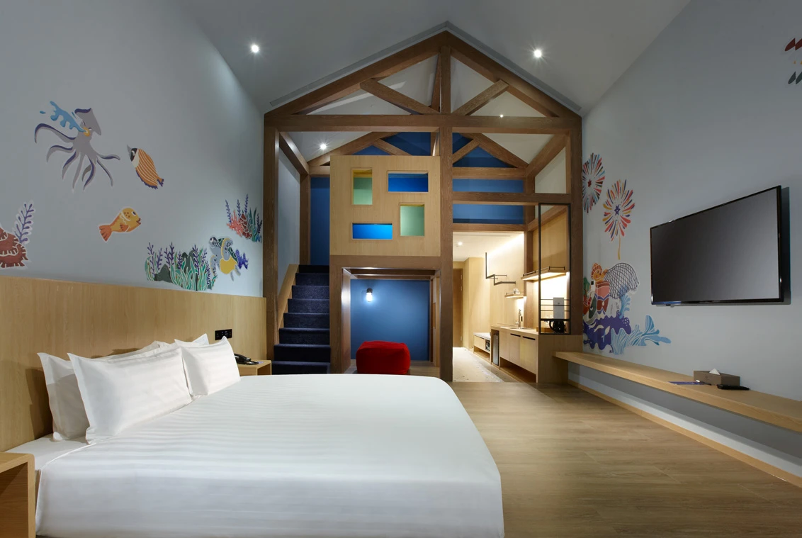 五種主題房型皆具明亮、清爽的通透空間感與高挑絕佳海景視野。