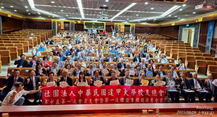 在熱情洋溢、情誼滿滿的氛圍中,逢甲大學校友總會第十屆第一次會員大會暨理監事、顧問聯席會議,於 114 年 8 月 9 日上午 11 時,假逢甲大學人言大樓啟垣廳隆重舉行。來自全世界的校友代表齊聚一堂,會議圓滿完成第十屆理監事的選舉,全體與會代表一致推舉李明和學長續任理事長,持續引領校友總會向前邁進。此盛會不僅彰顯了逢甲精神「傳承、創新、和諧、共善」的核心價值,更象徵這份精神在未來兩年會務中將持續發光發熱、薪火相傳。