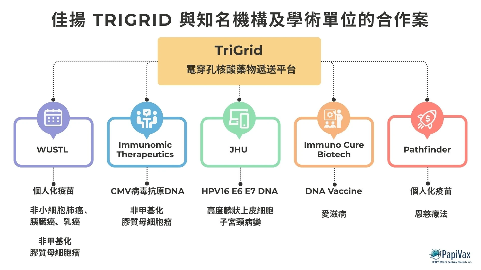 佳揚生技PVX4疫苗,治療HPV引起子宮頸上皮內贅瘤(CIN2~3),採用DNA搭配TriGrid進行給藥,臨床追蹤6個月的成效。
