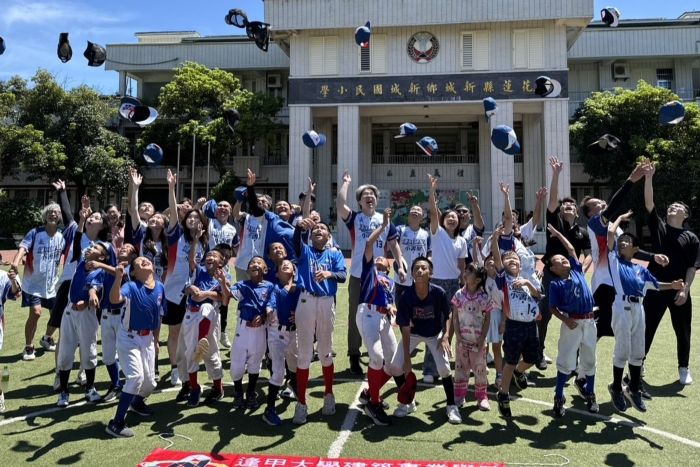 蘇泰霖執行長及小書屋志工與新城國小棒球隊賽前禮儀共享快樂與活力。