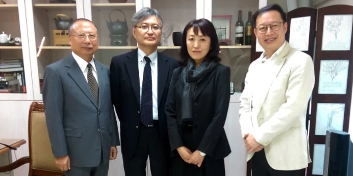 日本東京「日臺交流促進會」訪臺時,邀約黃學長茶敘,洽談加強臺日間學術文化交流相關事項。
