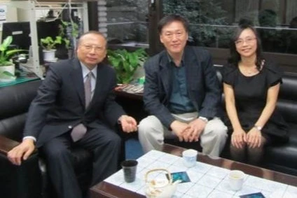 故張保隆校長偕游慧光國際長駕臨當時在日本代表處擔任秘書的黃學長辦公室。