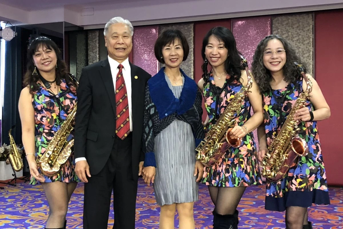會議在林會長伉儷的精心策劃之下,為與會所有來賓特別重金禮聘頂港有名聲,下港尚出名的台中市校友會薩克斯風樂團蒞臨演出,悠揚的樂聲帶動了現場的熱鬧氣氛。本次大會活動中更有意義的是適逢在地環球科技大學時尚造型設計系學生畢業展演活動,由於學生經濟狀況有限,因此特別邀請同學進行走秀與募款活動,而與會學長姊熱情澎湃的響應,不但幫助了這群學生順利達成募款的活動,更加再次展現逢甲人愛心不落人後的氣勢展現。