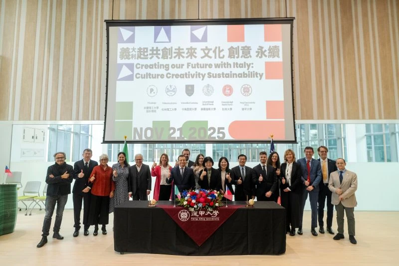 2025年11月14日至22日,由臺中市建築文化教育基金會與逢甲大學共同主辦的「義起共創未來:文化×創意×永續(Design the Future with Italy: Culture×Creativity× Sustainability)」系列活動隆重登場。這次活動創下了校史紀錄:首度一次與四所義大利頂尖名校簽署教育合作備忘錄(MOU),並邀集五所名校、13位權威學者齊聚一堂,共同探討設計如何回應全球永續挑戰 。