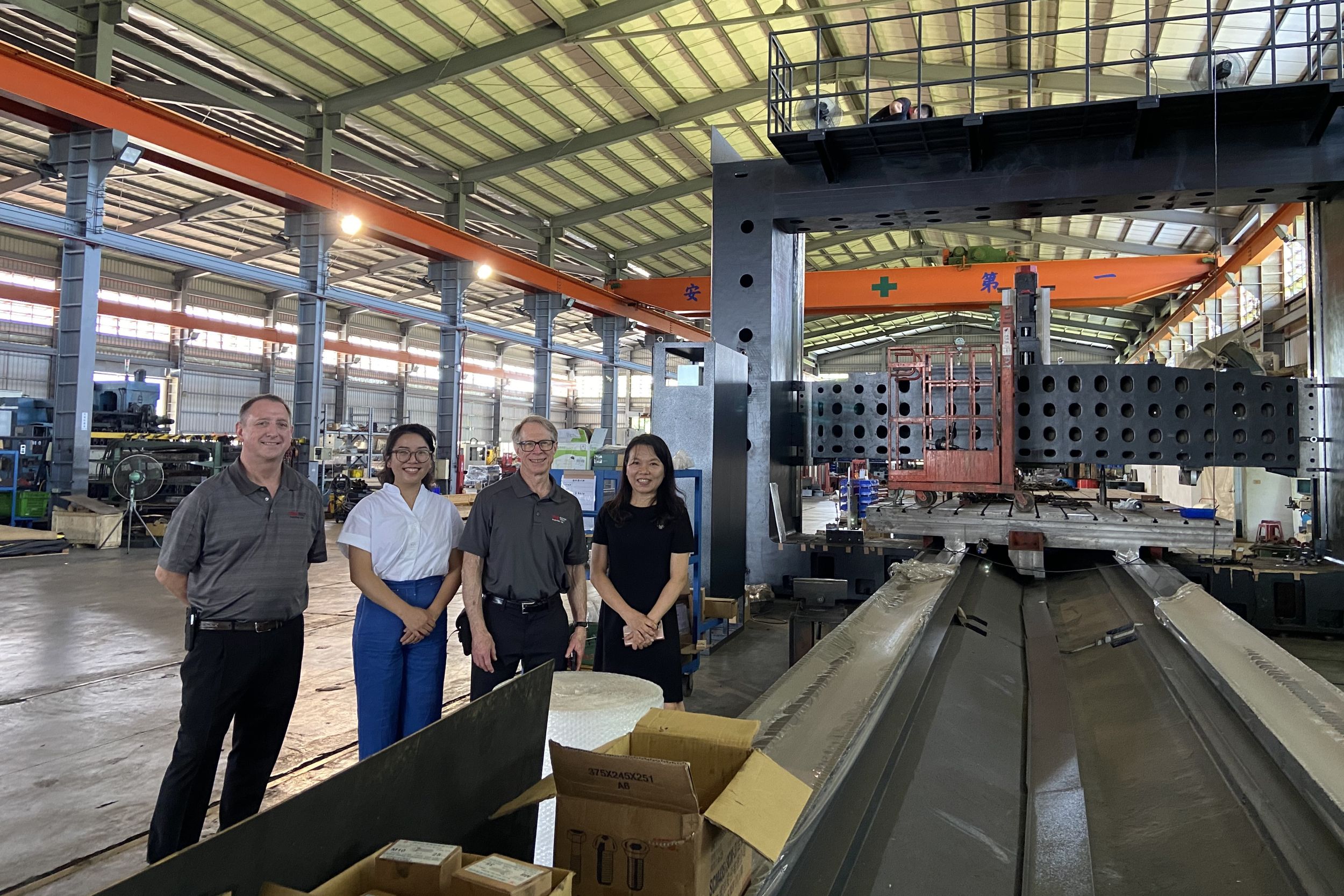 1995年是旭正的重要轉捩點。透過夥伴牽線,旭正西進雲南昆明,與當地兵工廠合作,由台灣製造銑床頭部,結合當地生產的床身。劉學姊回憶,原本設備老舊的兵工廠,兩年才能做出一台銑床,但在旭正導入管理與技術後,產能大幅提升,單月最高可達1,500至2,000台,遠超當時台灣全年的產量。這次成功,讓旭正迅速站穩中國市場,並陸續在廣東、上海設立據點,奠定兩岸供應鏈基礎。